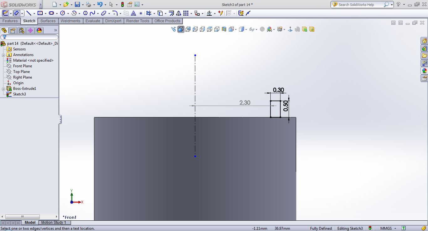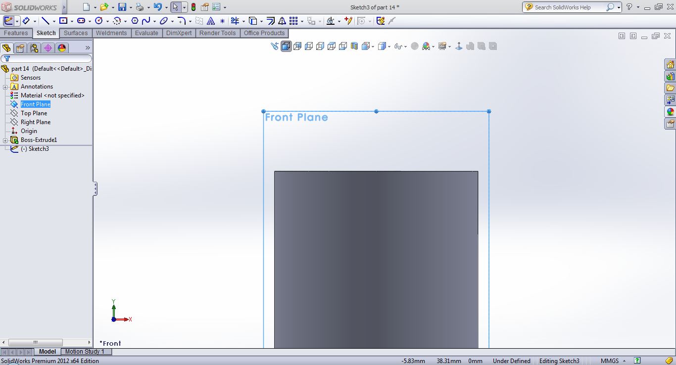 open a sketch on the front plane
