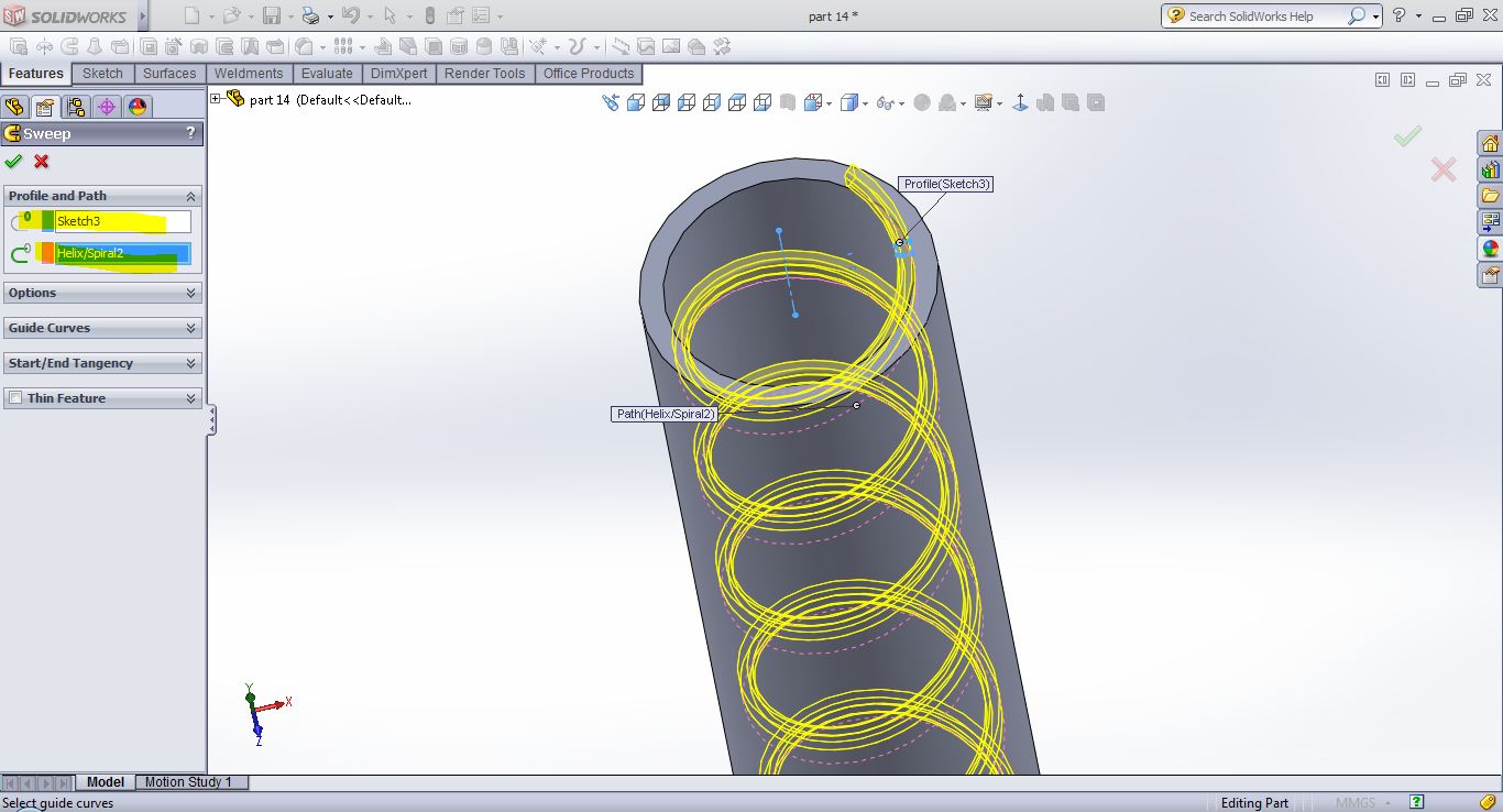 exit from sketch and insert--curve--helix