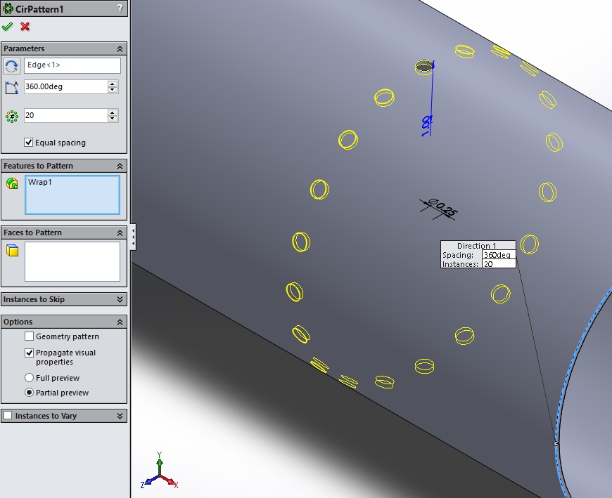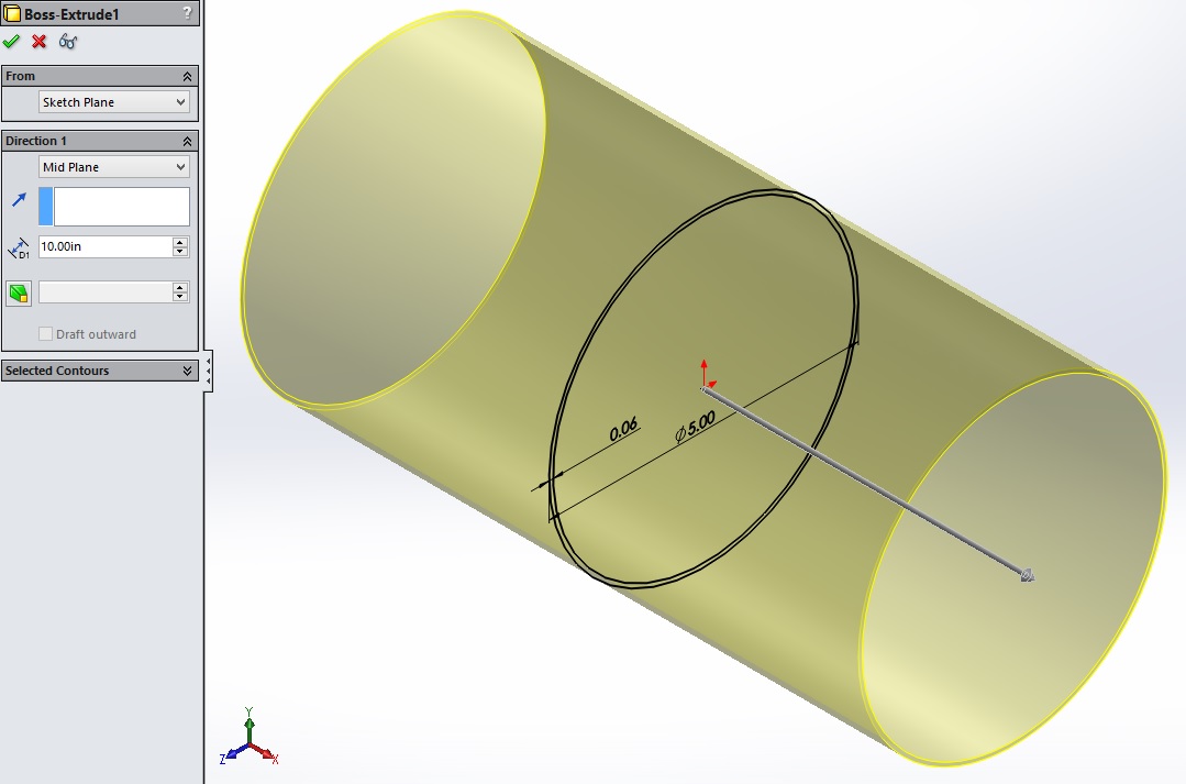 Create this sketch on the top plane, must have straight lines parallel to axis of the tubing.