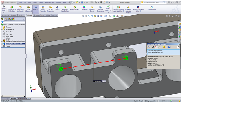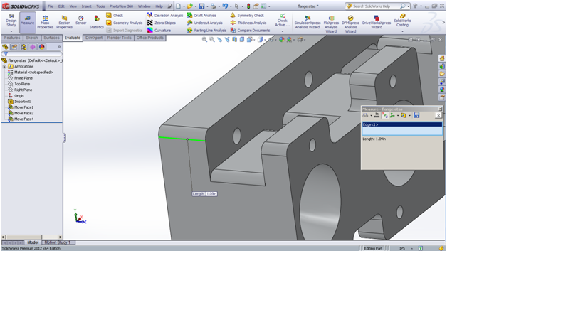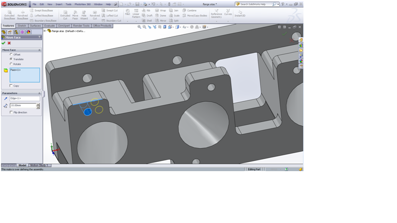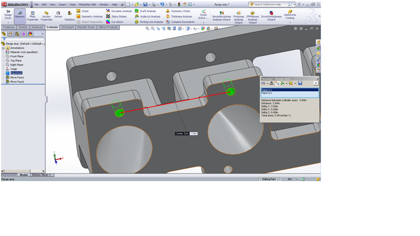 It is a dimension hole spacing = 4.32 "beginning before using the move face, now I will explain the change within the hole without having to make a sketch, this help us if the file is in the form of IGES / X_t