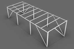 Industrial shelter 12 meter wide, 4 meters long and 2,97 meters total high (2,53 meters usable high from the front, and 2,88 meters from the back). Area is 48 m2. Uses 5 mm thick laser cut plates and the following tubes sizes (all in millimeters): 100x100x2 mm 80x40x2 mm Includes a link to YouTube with a video tutorial showing the design process from start to finish with Rhinoceros: https://youtu.be/6KgcZnYgpok