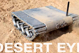 Mobile, military robot optimized for use in desert environments which can be controlled remotely or autonomously and can collect/ stream video to a VR headset via its front mounted camera. The method of movement is a continuous track, created using steel roller chain connected by fasteners with 3D printed links. These loops sit on a custom designed drive sprocket and idler sprocket with 4 shock absorber loaded roller pins that act as the suspension system. The drive motors are powered by '18650' batteries, directed by a raspberry pi 4 and connected to a motor controller. For connectivity, a mobile device can connect to the pi's external antenna as it is a WiFi access point. From here, directions can be sent to the robot from the mobile device using the Node Red GUI and additionally, the entirety of the main raspberry pi computer can be accessed for the use of sending custom commands for autonomous movement.