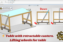 Concept of a mechanism for a table with retractable casters. This is only idea/prototype could use for welding tables, assembly tables and other projects. mechanical mechanism. This video showcases a concept table design featuring retractable casters, also known as lifting wheels for table, which provides a convenient and efficient way to move the table around while keeping it stable when in use.