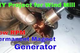 Converting 12 Volt DC motor of Car radiator fan into low speed Permanent magnet generator in just 10 minutes video. every this is described like Wire size, number of turns and connections diagram.