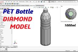 PET Bottle 1000ml with Diamond Model, we can learn for five step: 1. Create revolved boss 2. Extruded cut with polygon sketch profile for three position 3. Fillet command 4. Swept cut for bottom of bottle 5. Thread for neck Number 1-4, can you learn in this tutorial. Than number 5, can you see at https://grabcad.com/tutorials/draw-cosmetic-bottle-in-solidworks