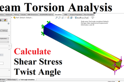Shear stress and twist angle of a shell type box beam will be calculated using torsion analysis of a beam with solidworks simulation module. The beam has length of 1500 inch and square cross section of 150 inch. Beam is fixed at one end and subjected to torque of 300 lb-in to free end. We will do followings steps in soldiworks simulations. -Make surface model of box beam -Start solidworks structural simulations -Define new material -Assign thickness using shell definition -Assign fixed support & Torque to free end edges -Create mesh and run simulation study -Evaluate shear stress on XZ and YX plane -Evaluate total deformation -Calculate twist angle of beam using standard formula that will be shown in video