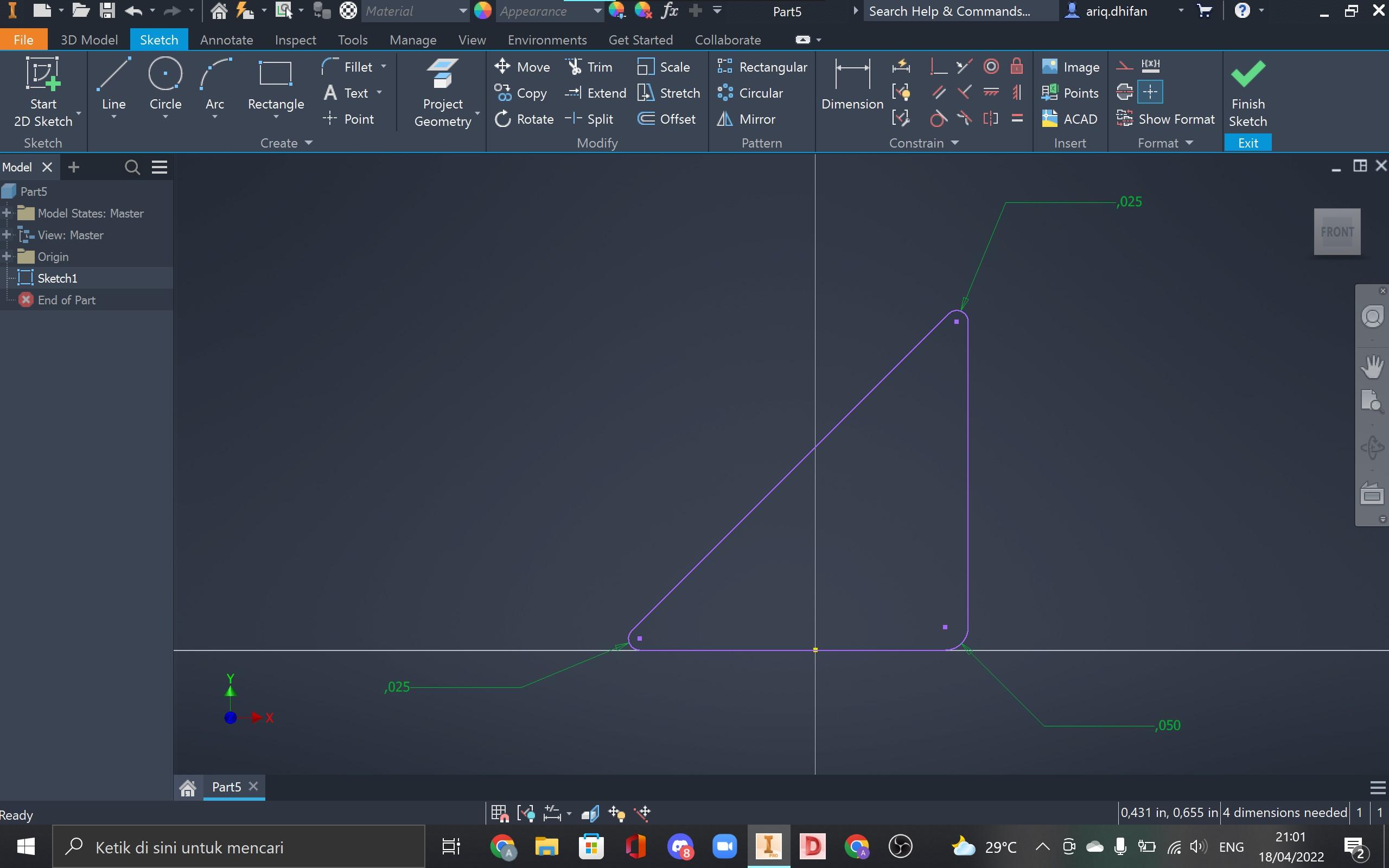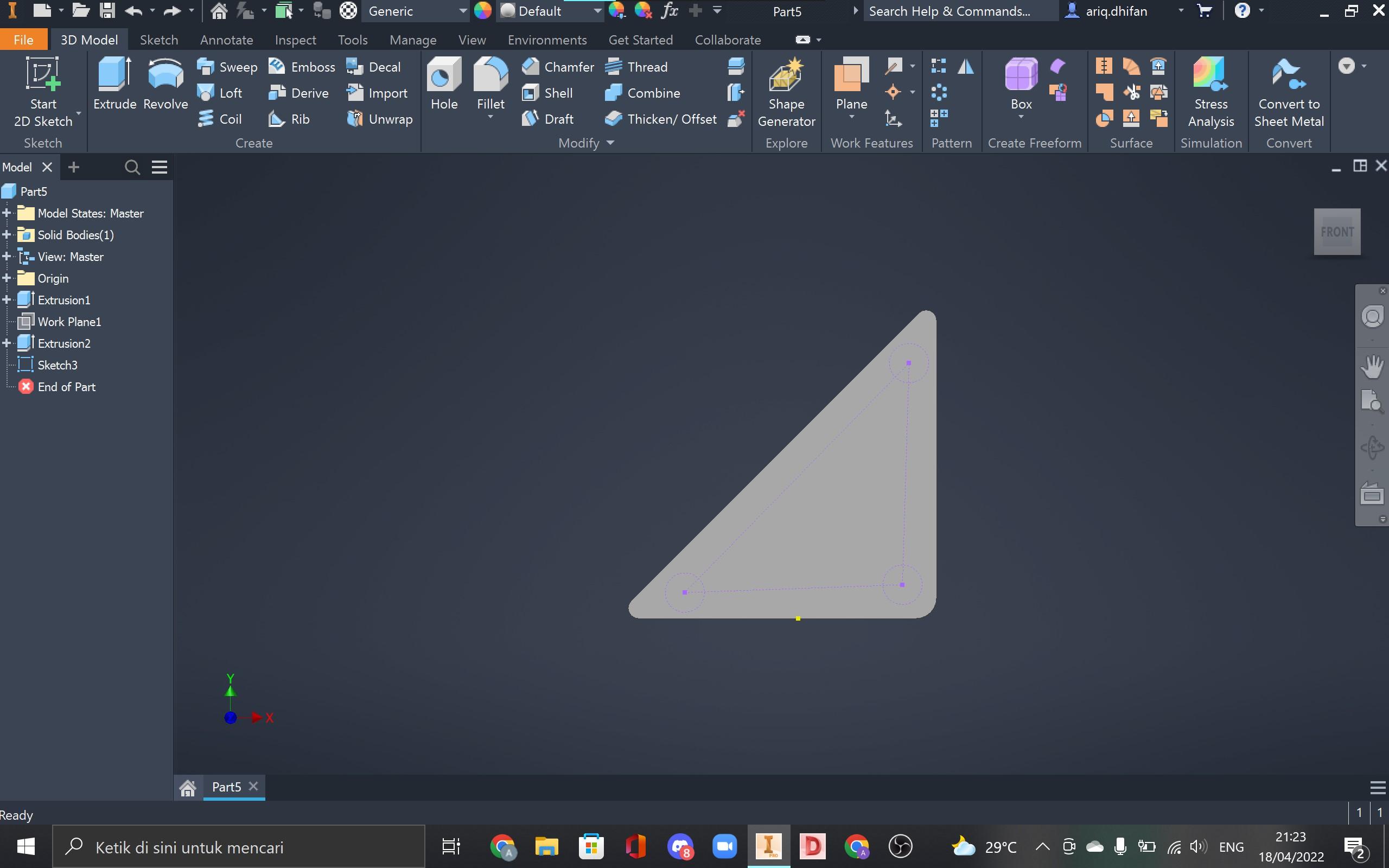 Step 1: Draw a triangle sketch at the xy plane