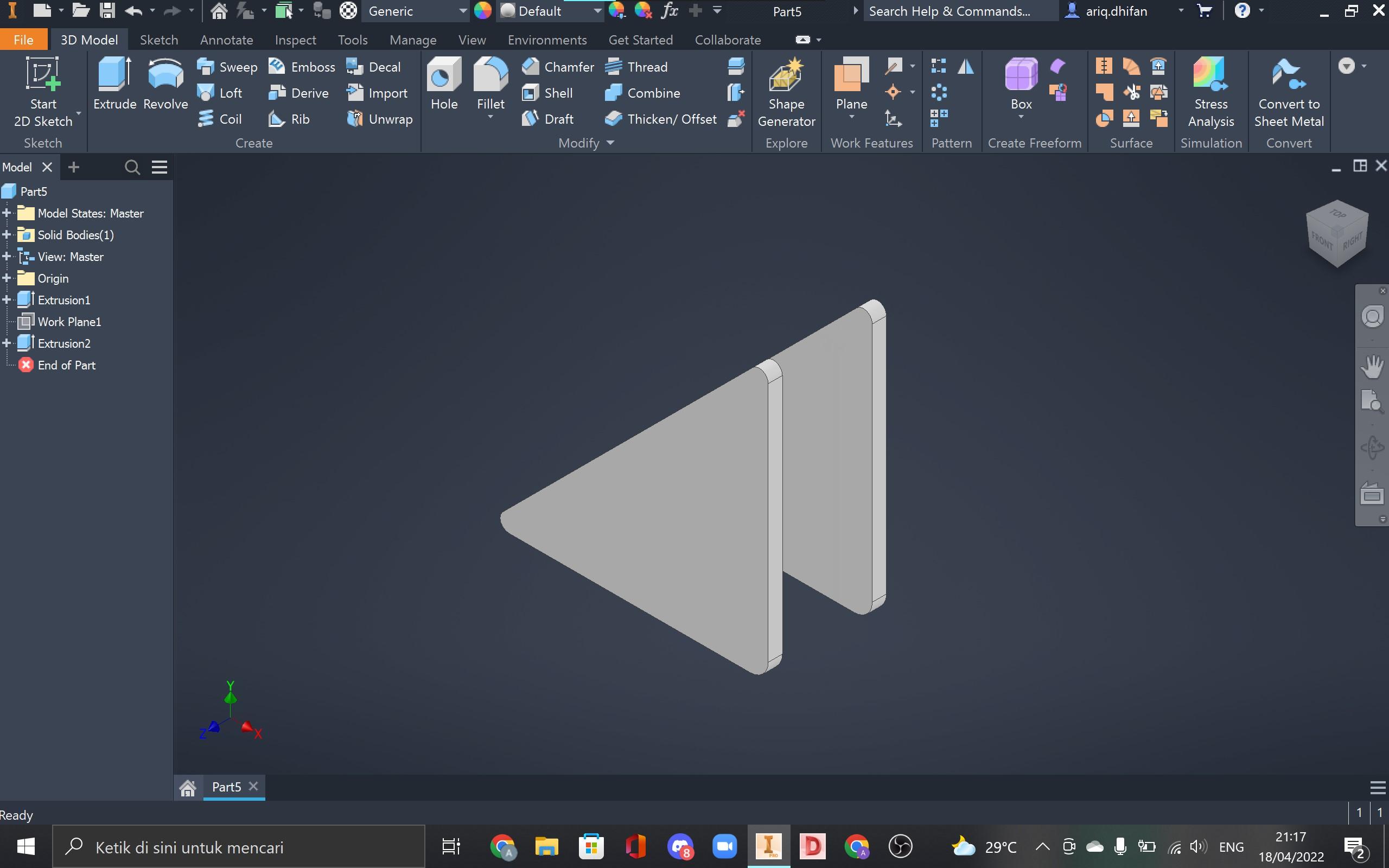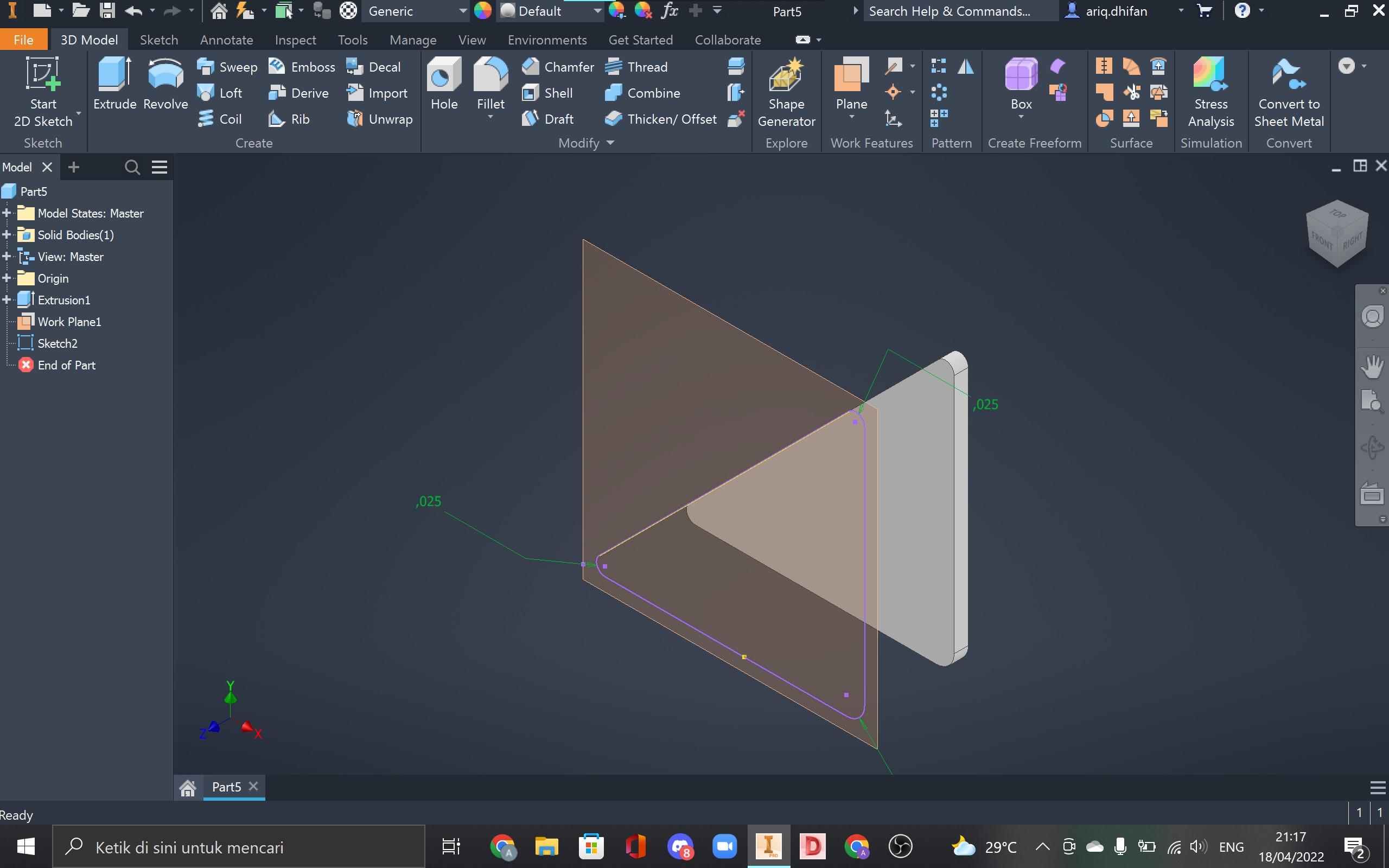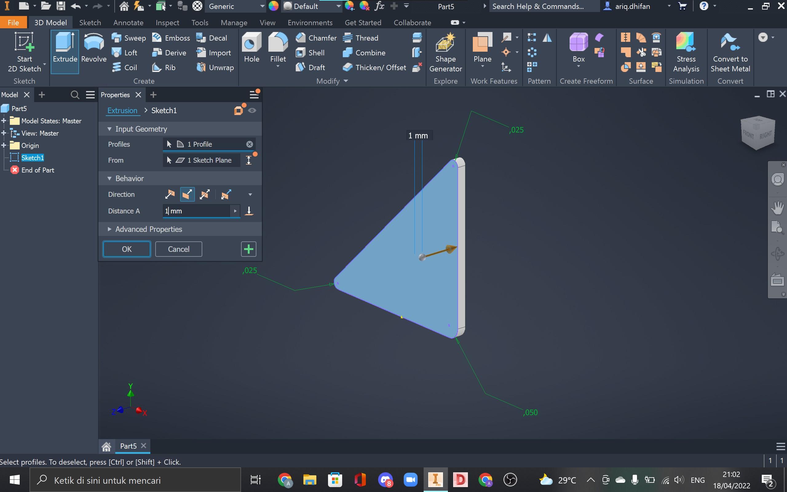 Step 3: Extrude the triangle with a 1 mm distance